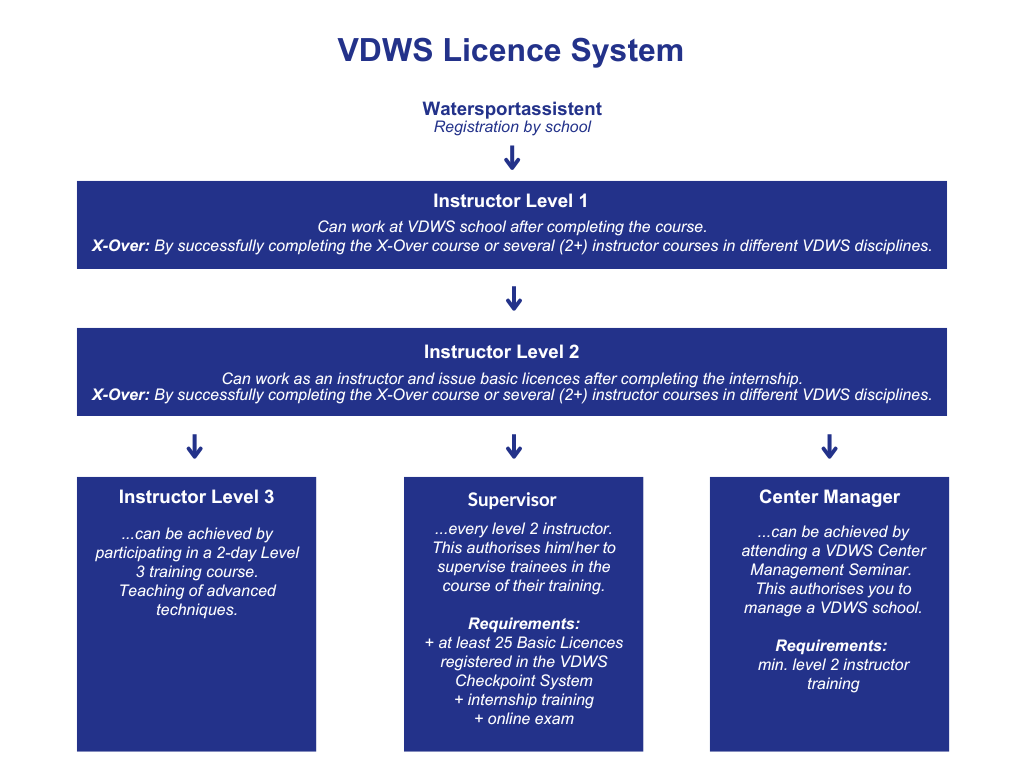 Congratulations! You’ve successfully completed Level 1 and are ready to take the next step? After your internship and exams, you’ll become a VDWS Level 2 Instructor! This qualification allows you to teach independently and issue basic licenses to your students.